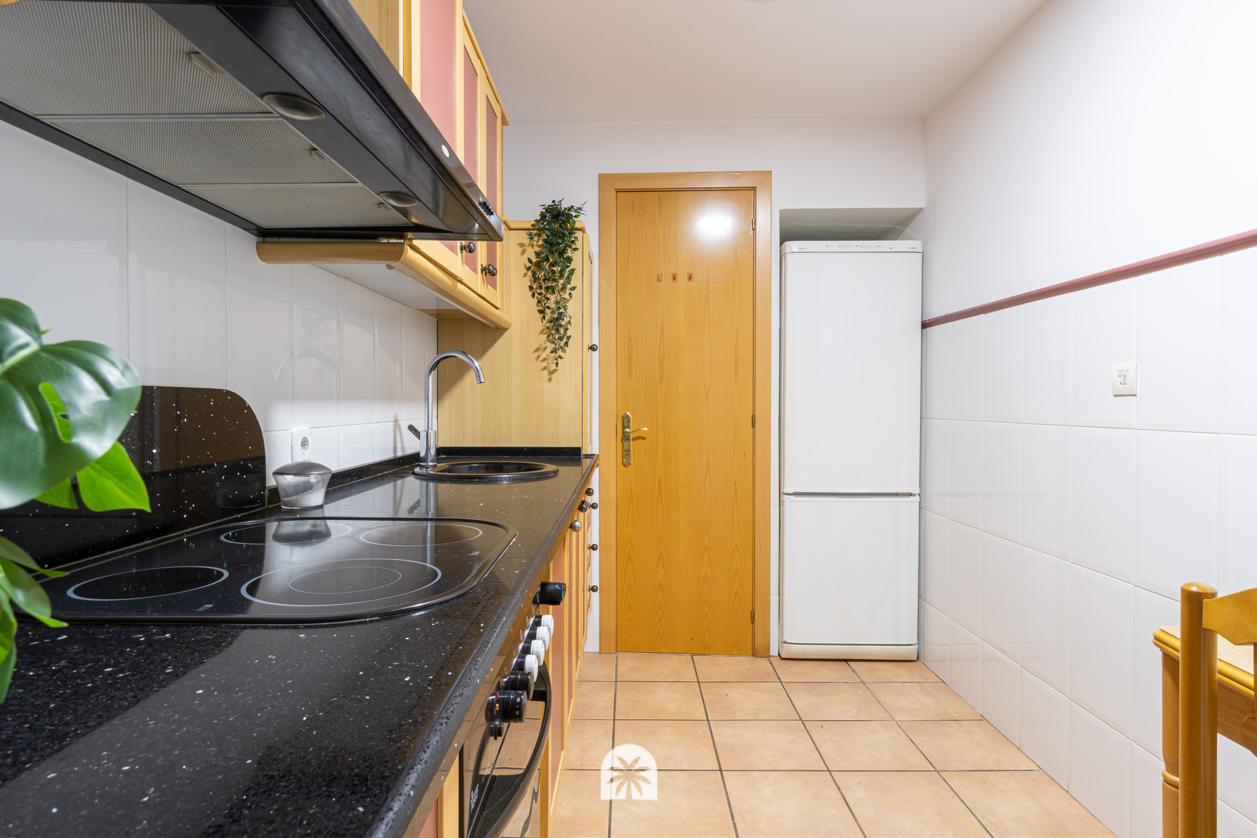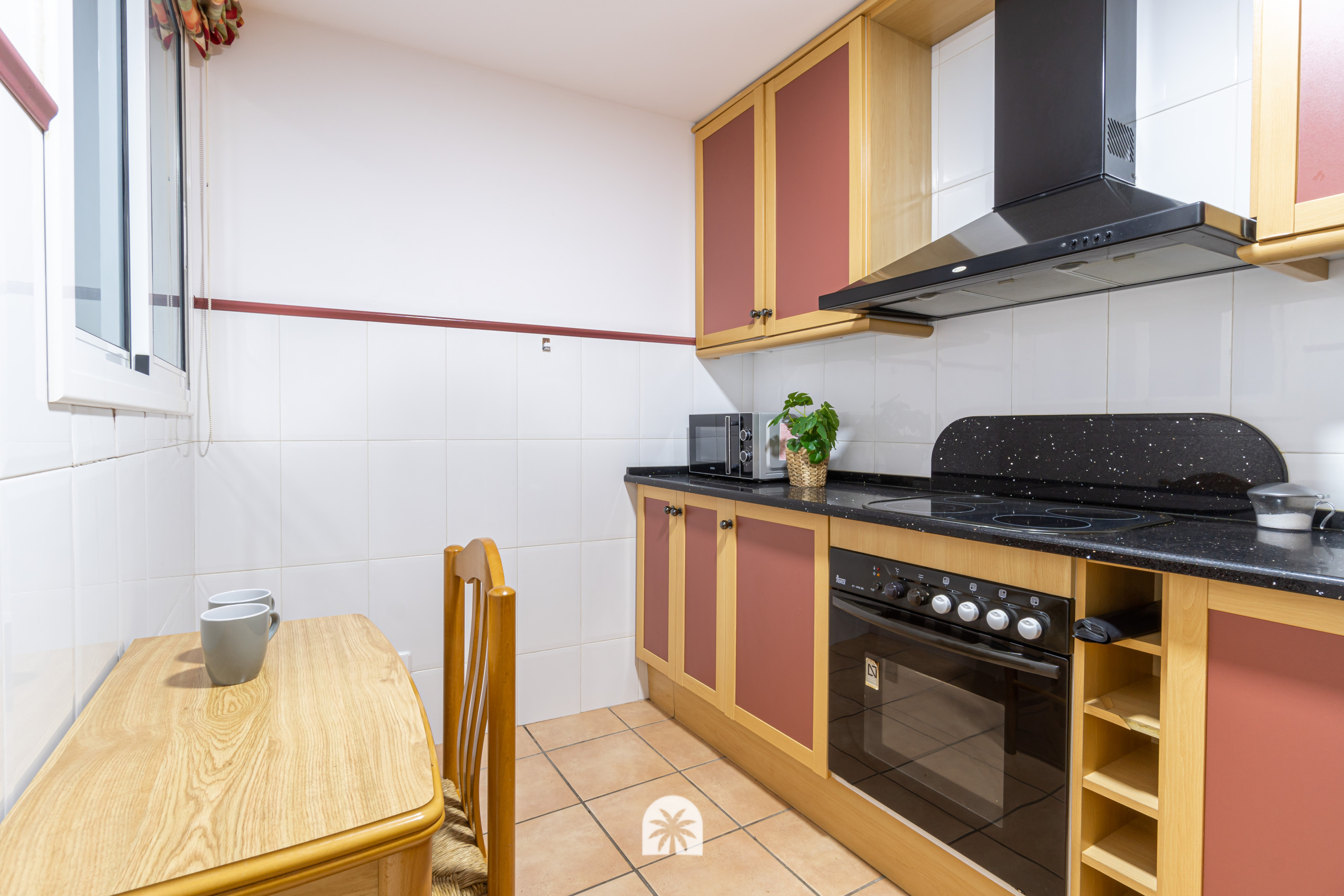 La moderna cocina americana de vitrocerámica está totalmente equipada para tus necesidades, con nevera, microondas, así como vajilla, cubertería, utensilios de cocina y una cafetera para preparar tu café por la mañana.