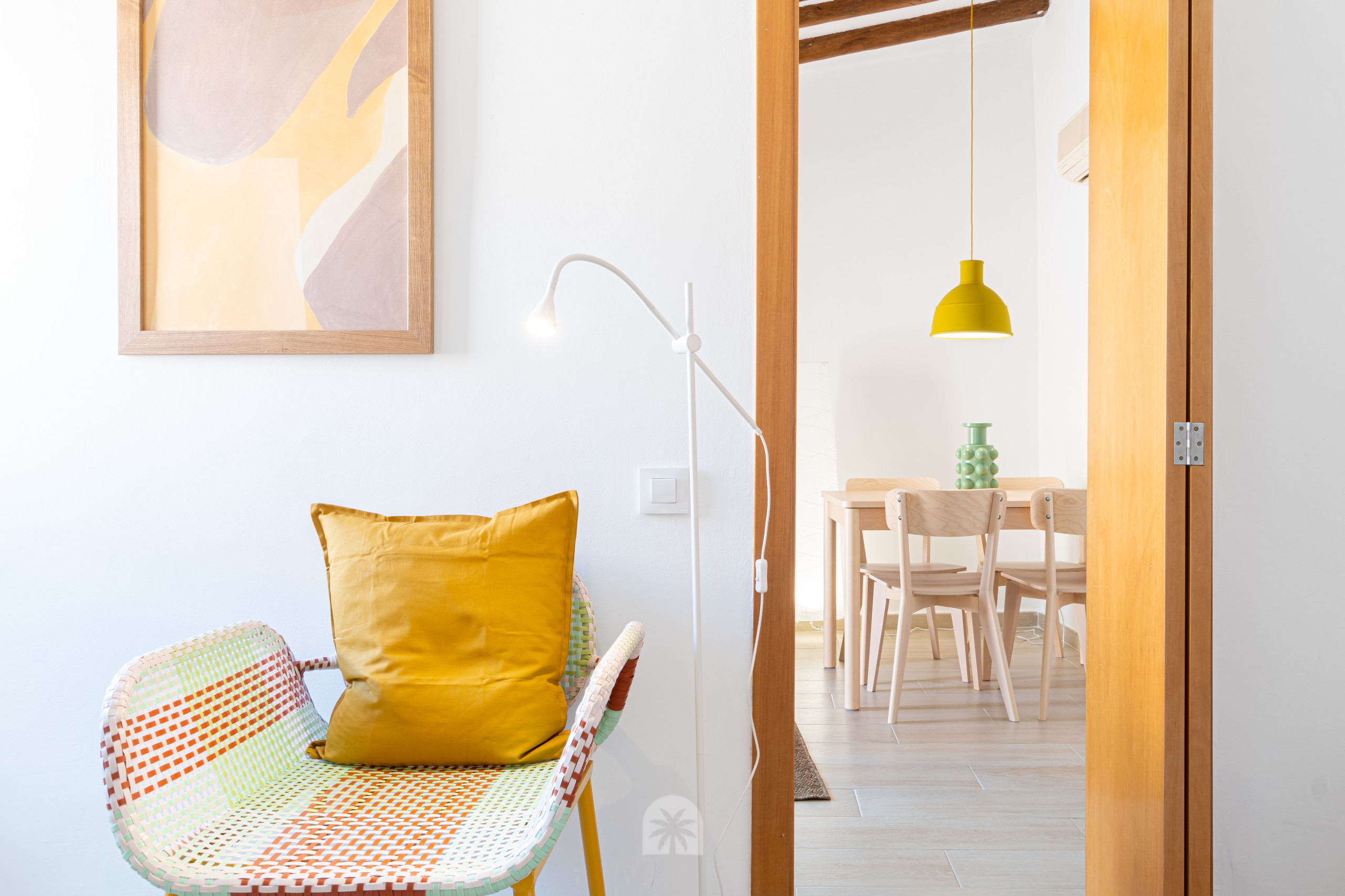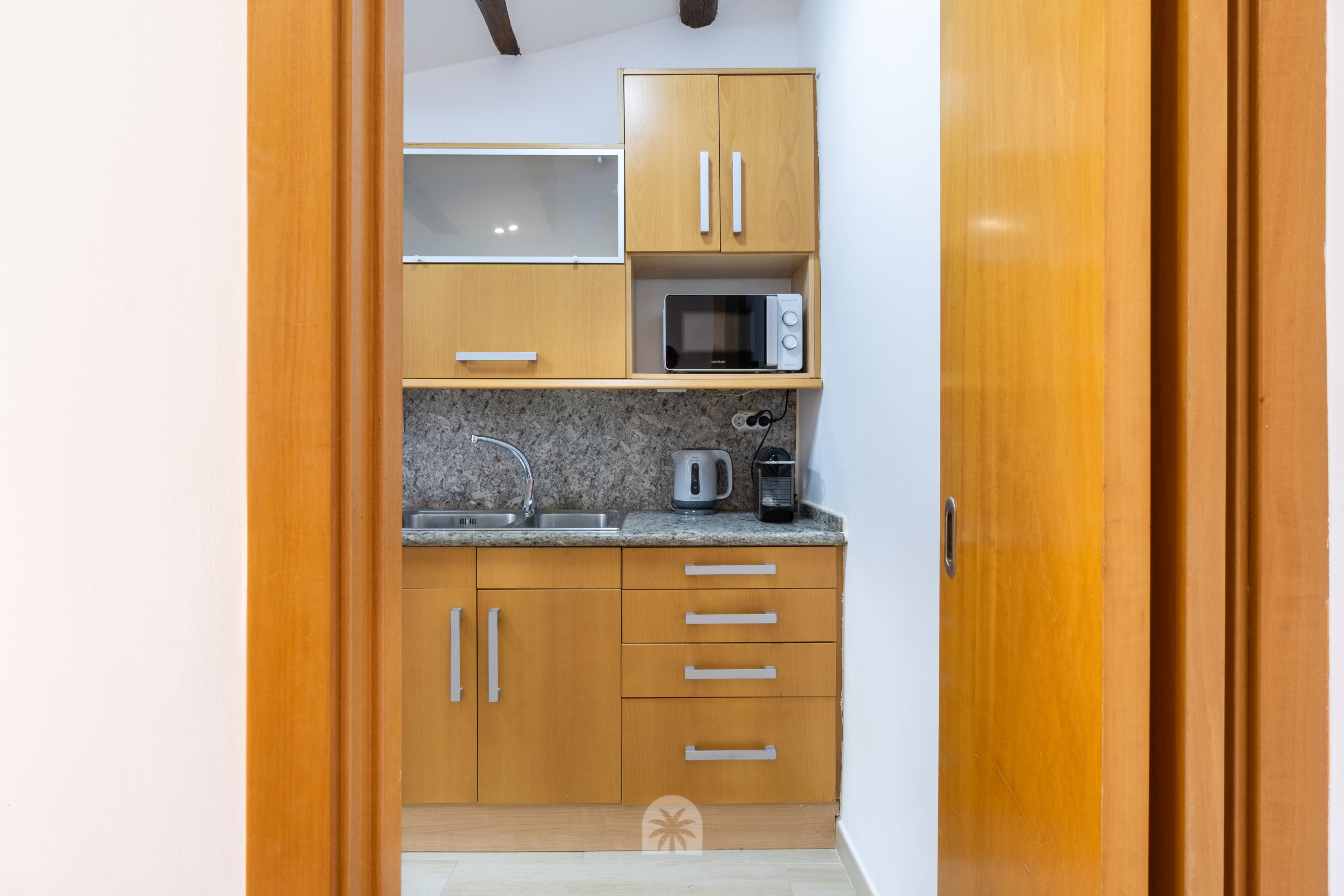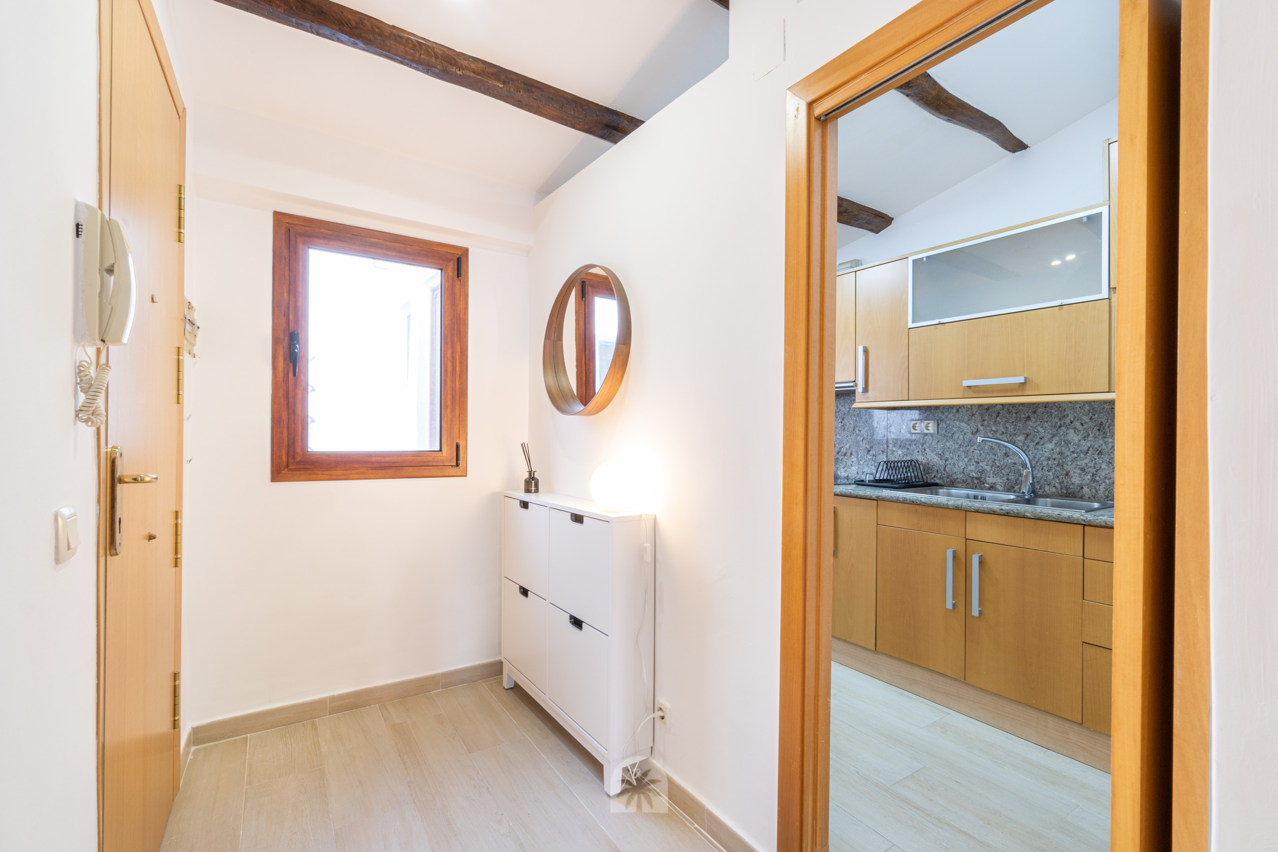 Este espacio está diseñado con un estilo moderno y acogedor, destacando el uso de maderas naturales que aportan calidez al ambiente. El apartamento cuenta con una cocina americana completamente equipada, un baño completo, un dormitorio doble, y un salón comedor moderno con un sofá cama doble, ideal para parejas o pequeños grupos.